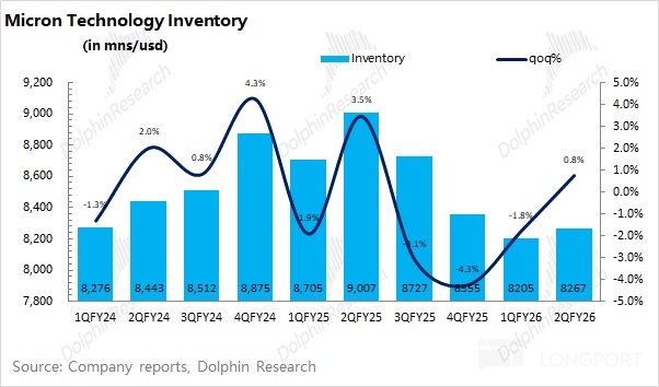 Inventory stood at $8.27bn, up 0.8% QoQ. Supported by data center demand, days inventory fell to 121, a relatively low level.