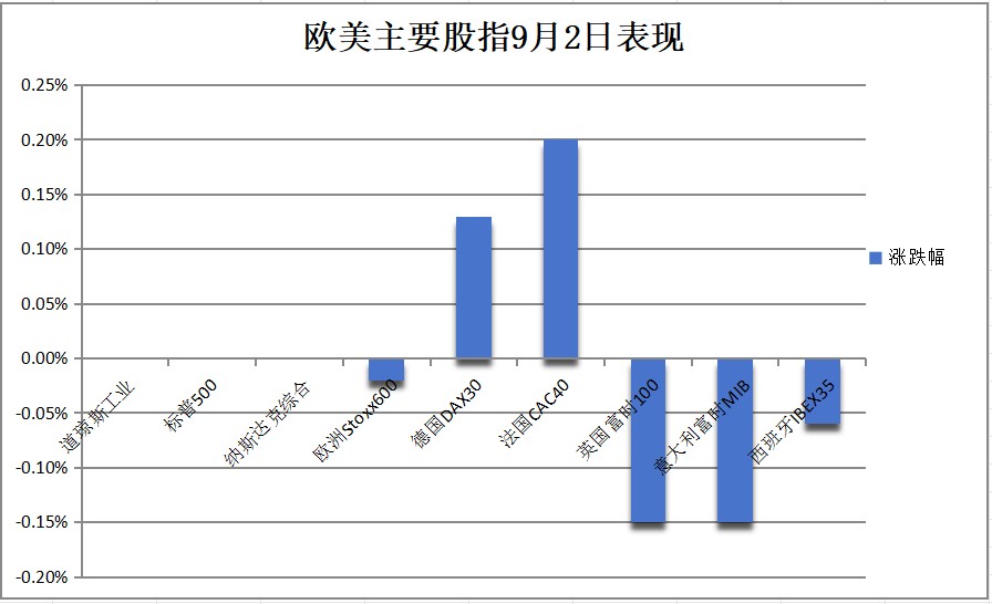歐洲多國股指漲跌各異。德國股指收漲 0.13%。法國股指收漲 0.20%。意大利股指收跌 0.15%。荷蘭股指收漲 0.22%。西班牙股指收跌 0.06%,英國股指收跌 0.15%。