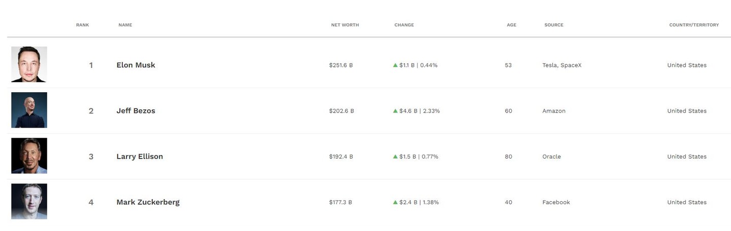 近來甲骨文股價上漲的最大受益者是上月剛年滿 80 高齡的公司創始人兼董事長埃裏森( Larry Ellison),他持有甲骨文 40% 以上的流通股。《福布斯》的全球億萬富豪排行榜實時數據顯示,到本週三,埃裏森的個人淨資產已飆升至 1924 億美元,僅次於特斯拉以及 SpaceX 的 CEO 馬斯克和亞馬遜創始人貝佐斯,後兩者的個人身家分別為 2516 億美元和 2026 億美元。排在埃裏森之後、本週二位列第四的 Meta CEO 扎克伯格身家和他相差了 151 億美元。