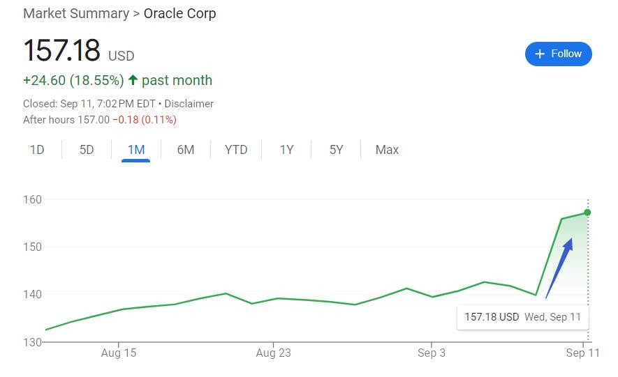 甲骨文的財報無疑是最近股價上漲的最大推手,公佈財報後的首個交易日本週二,甲骨文股價一日大漲 11.4%,埃裏森的個人資產也在當天超越了扎克伯格。