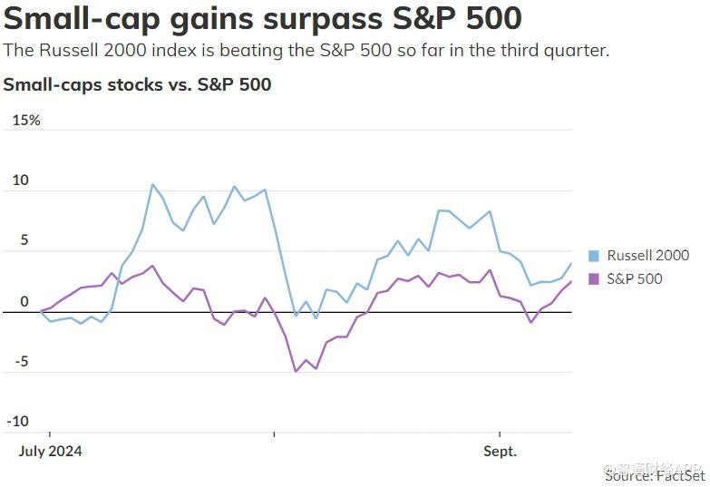 美國小盤股在第三季度表現優於標普 500 指數,羅素 2000 指數上漲 4%。儘管 9 月份遭受衝擊,嘉信理財的首席投資策略師 Liz Ann Sonders 指出,美聯儲的寬鬆政策提振了小盤股。她表示小盤股在降息週期中表現良好,但目前並未處於經濟衰退。投資者預計美聯儲將下調基準利率,市場對降息幅度的預期有所調整。