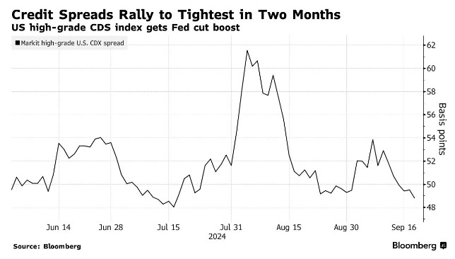 美聯儲宣佈降息以實現經濟軟着陸,導致美國公司債券市場風險指標小幅走低。信用違約掉期指數利差收窄至兩個月來的最窄水平,信貸風險降低。降息可能刺激投資者購買債券,但也可能推動更多公司發行債券。預計在美國總統大選前,公司債發行將放緩,但分析師認為收益率下降將促使企業借貸增加。