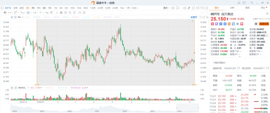 閲文在短劇概念火熱後,成為市場關注的焦點,展現出強大的 IP 儲備和作品表現,推出多部爆款劇集。然而,儘管營收增長,閲文的股價表現卻不佳,年內下跌近 15%。2024 年上半年,閲文營收為 41.9 億元,同比增長 27.7%,但核心利潤低於市場預期,網文業務收入下滑,顯示出新老業務交接的挑戰。
