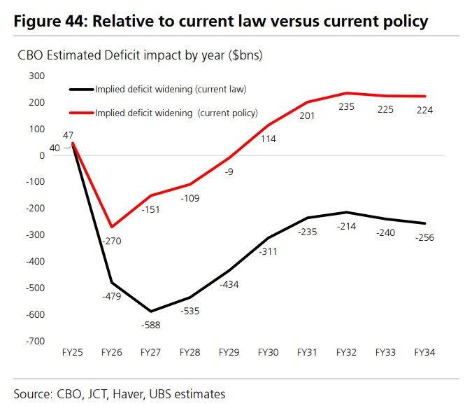 UBS indicates that the act increases the deficit before 2026 and then shifts to narrowing, with a total reduction of the deficit by $400 billion over ten years.