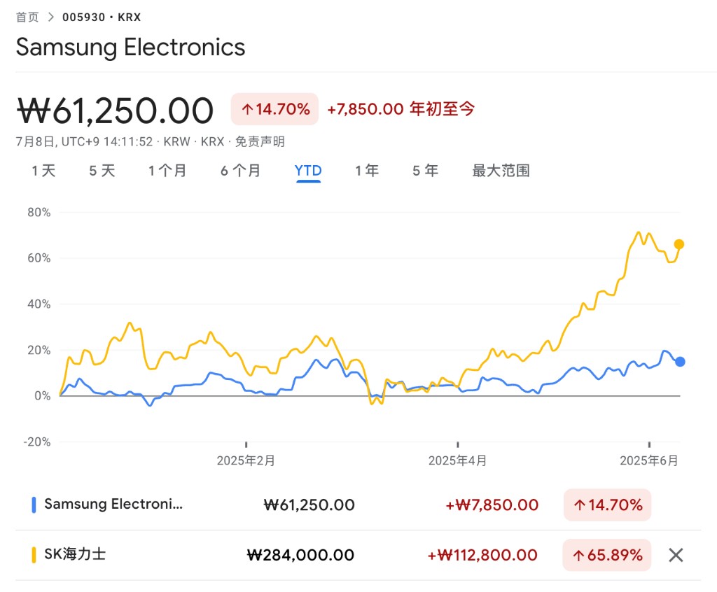 As a result of this news, Samsung's stock price fell by 0.6% on Tuesday, while SK Hynix's stock price rose by 3.3%. So far this year, Samsung's stock price has only increased by 15%, far behind SK Hynix's approximately 65% rise.