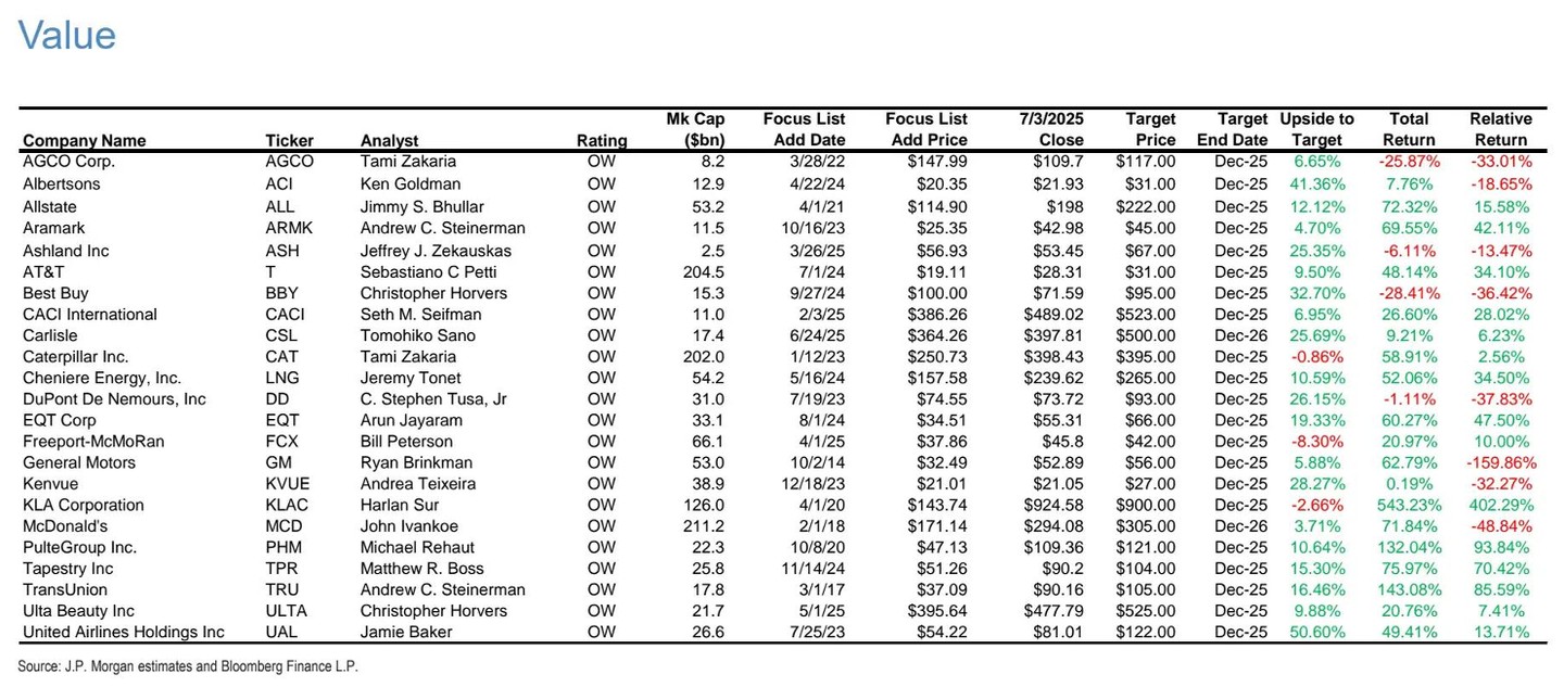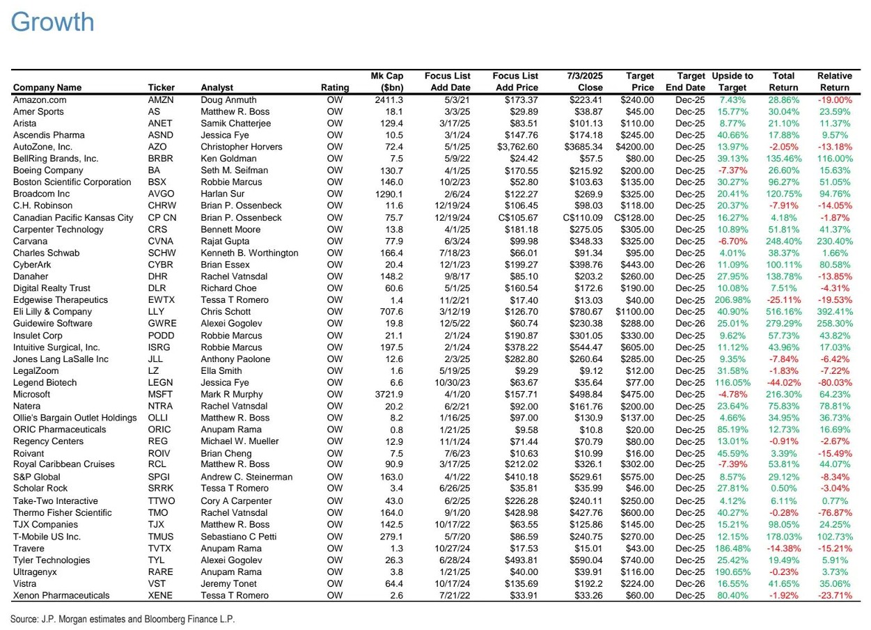 Here are the U.S. stocks on JP Morgan's Analyst Focus List for July.