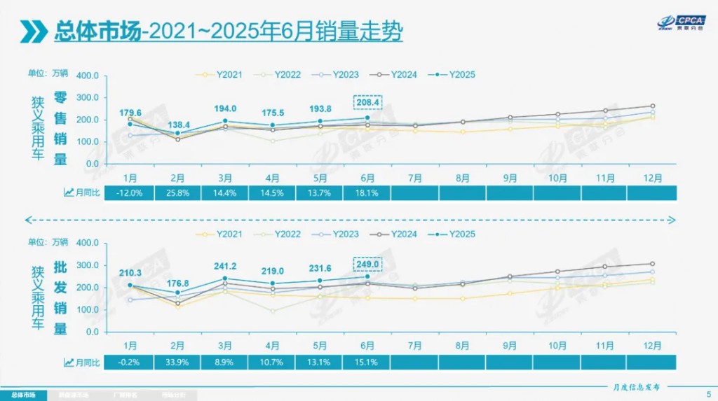 According to data from the Passenger Car Association, in June 2025, the national passenger car market retail reached 2.084 million units, a year-on-year increase of 18.1% and a month-on-month increase of 7.6%. Cumulatively, retail reached 10.901 million units this year, a year-on-year increase of 10.8%. The Passenger Car Association stated: