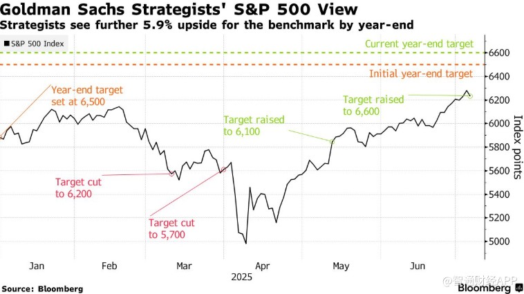 Goldman Sachs currently expects the S&P 500 index to rise to 6,600 points by the end of the year and reach 6,900 points within 12 months, raising its previous forecasts by 6% and 11% respectively, citing that the Federal Reserve will take interest rate cuts earlier. This is the second time in two months that Goldman Sachs strategists have raised their expectations, and the fourth adjustment of the S&P 500 index target this year, reflecting the challenges faced by Wall Street strategists amid tariff uncertainties.