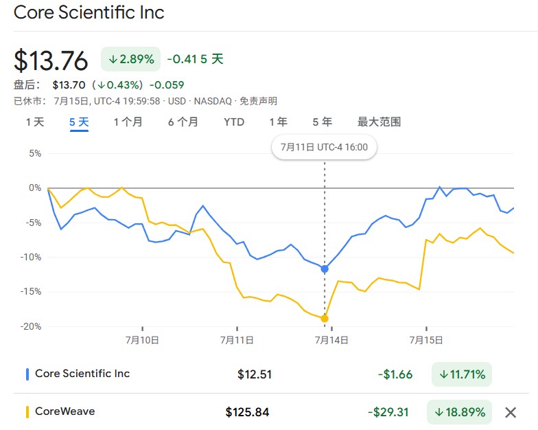 According to media reports, the two companies began negotiations as early as June 26. Before the news broke, Core Scientific's stock price was around $12, about $1 lower than the current level. In contrast, the initial acquisition proposal valued Core Scientific at about $20 per share.