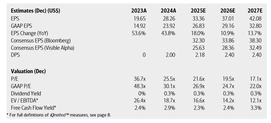 Finally, Bank of America believes this post further emphasizes the importance of the potential return on AI investments as a focus for long-term investors. Meta may need to demonstrate strong AI returns to drive valuation multiple expansion, with the current stock price equivalent to 25 times the expected earnings per share in 2026.