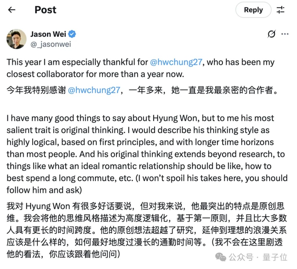 Chinese scientist Jason Wei, the proponent of "Chain-of-Thought," is a key figure behind o1.