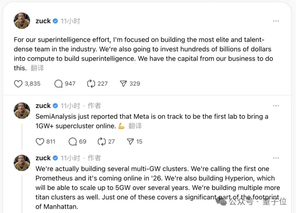 Initially, Ultraman said that those who were poached were "only after profit," but OpenAI's series of moves, including holidays, salary increases, and stock incentives, have failed to retain these talents Amidst widespread speculation, Mark Zuckerberg personally provided a positive response: they joined Meta not for the sake of money, but to build a god—build god, the ultimate AGI.