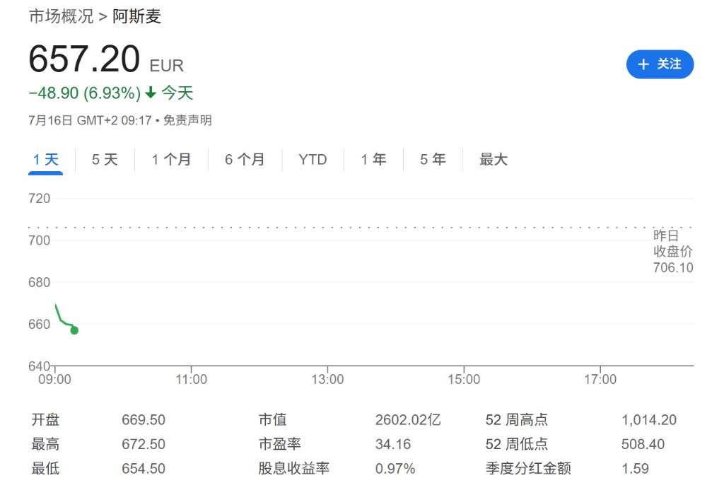 - European stocks opened lower collectively, with the Euro Stoxx 50 index down 0.53%, the German DAX index down 0.33%, and the UK FTSE 100 index down 0.05%. ASML shares fell nearly 6%. Richemont shares rose 1.2% in Europe, as the company's sales exceeded expectations. Stellantis shares fell as much as 5% in Europe after the company decided to cancel its hydrogen fuel cell vehicle project.