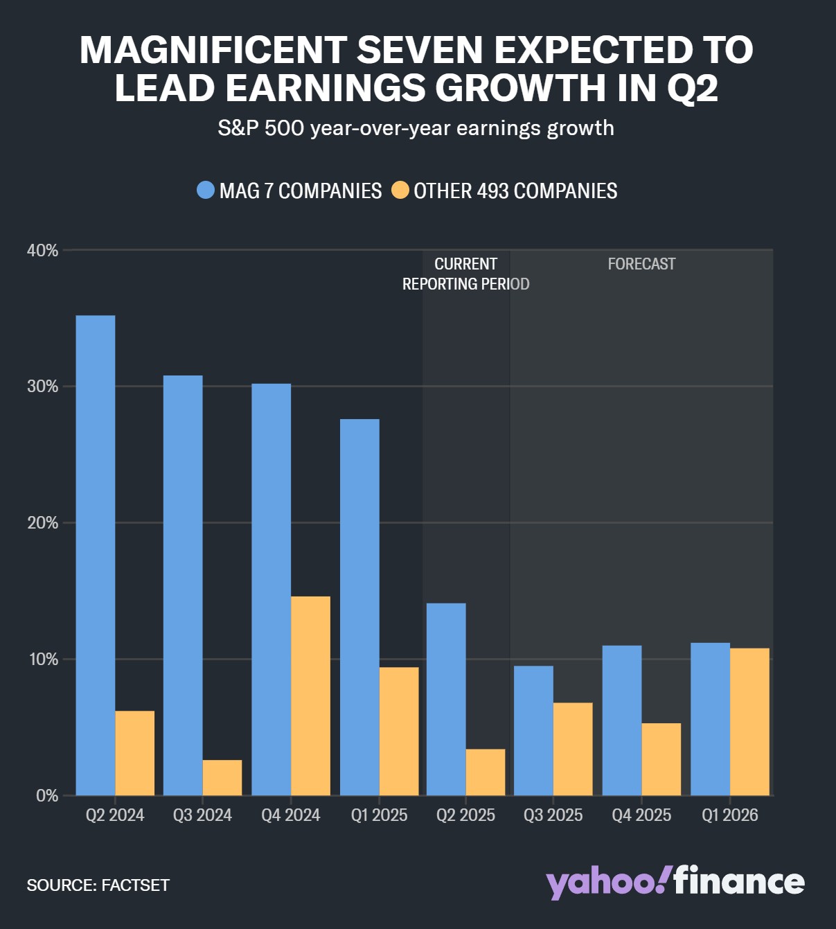 Alphabet and Tesla will kick off the quarterly earnings releases for the "Seven Giants" tech stocks. This batch of stocks is expected to once again lead the S&P 500's earnings growth this quarter.