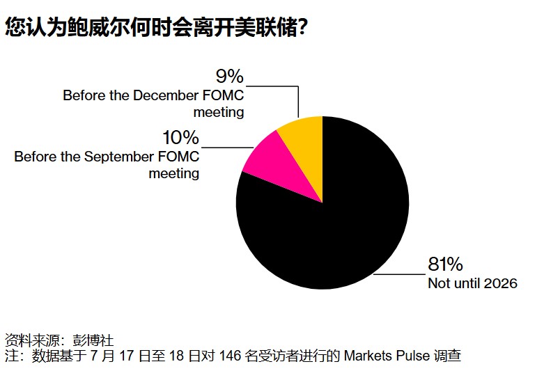 Recently, Trump's attacks on Powell and his allies have noticeably escalated, continuously pressuring him to resign under the pretext of cost overruns in the renovation of the Federal Reserve headquarters. Powell responded by stating that if it weren't for Trump's tariff policies increasing economic uncertainty, the Federal Reserve could have initiated rate cuts earlier this year. Although most Wall Street professionals believe that Trump faces legal obstacles to "fire Powell for cause" (the betting market Polymarket shows a 22% probability of his departure in 2025, a slight increase from 18% last week), surveys indicate that most respondents still expect Powell to complete his term until May next year.