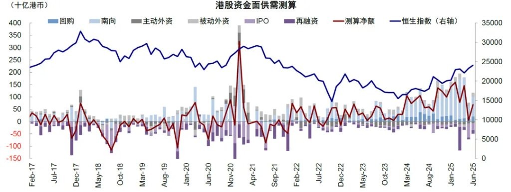 Looking ahead, the long-term macro factors supporting the capital situation in Hong Kong stocks have not changed; the situation of ample funds but limited quality assets may continue. However, in terms of rhythm, the third quarter faces pressure from multiple aspects of tightening liquidity, including the Hong Kong Monetary Authority possibly continuing to withdraw liquidity, tightening external dollar conditions, and ongoing supply pressure from IPOs/placements, which may cause some disturbances. At the same time, growth is slowing, policy efforts are easing, and there are uncertainties in tariff negotiations. Nevertheless, we still suggest that if volatility can provide better re-entry opportunities, "actively intervening during downturns and moderately taking profits during exuberance" remains an effective strategy. **