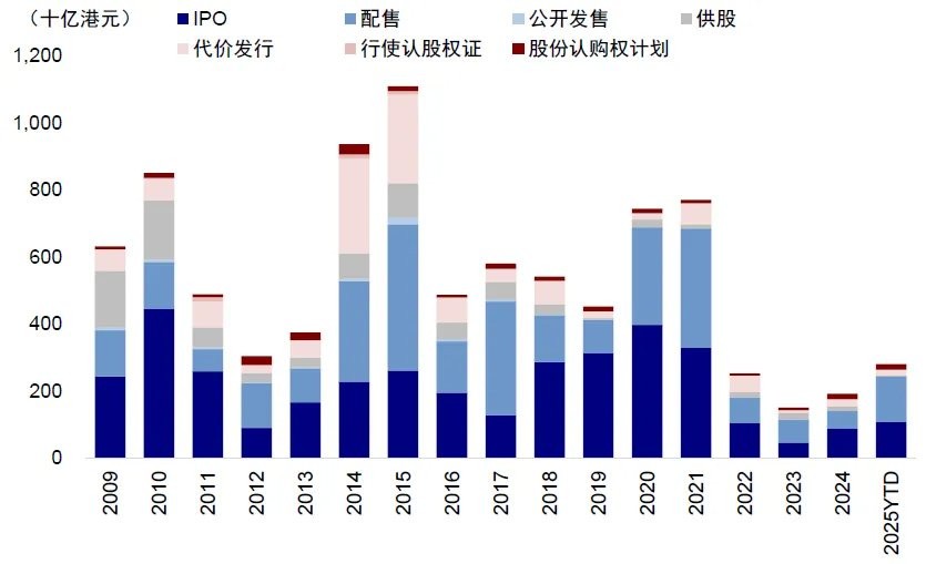 The Hong Kong stock market has remained active since the beginning of 2025 due to the emergence of new narratives, with an average daily trading volume reaching HKD 240.6 billion and an average daily inflow of southbound funds of HKD 6.15 billion, approaching last year's total level. Despite the overall economic downturn, structural trends remain active, with popular sectors experiencing crowded trades and more companies listing in Hong Kong, with 51 IPOs this year raising over HKD 100 billion