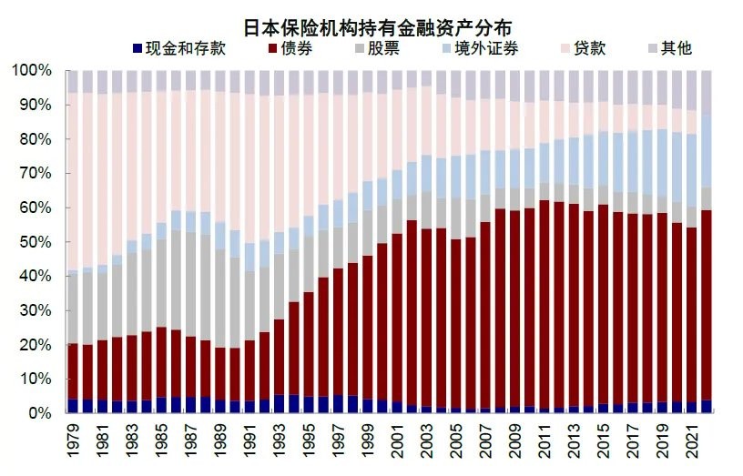 Chart: Japanese insurance institutions continuously increased bond allocation in the 1990s