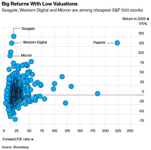 At the beginning of 2025, Western Digital's expected price-to-earnings ratio (P/E ratio) was less than 6 times, while Seagate and Micron were only about 10 times. Although their valuations have since risen, the current P/E ratios of all three are still below the S&P 500 index (with a forward 12-month expected P/E ratio of 23 times)