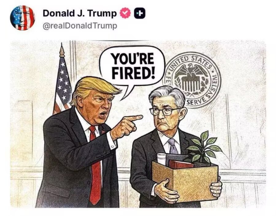 Trump posted an AI-generated meme on social media over the weekend, showing him pointing at Powell and shouting his iconic "You're fired," with the official seal of the Federal Reserve in the background. Earlier this week, Powell reiterated the independence of the Federal Reserve in a speech, emphasizing that decisions are made without political considerations, which the market interpreted as a direct response to pressure from Trump