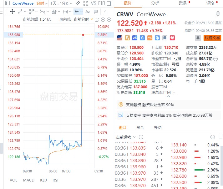 On the 30th, Tuesday, CoreWeave's pre-market stock rose over 9%.