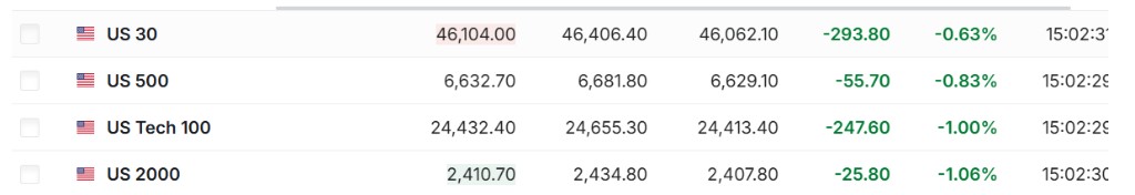 市場避險情緒升温,美股指數期貨普跌,納指期貨跌 1%,日經 225 指數跌超 1%,歐股多數低開。COMEX 黃金升破 3900 美元/盎司,再創紀錄新高。美元、美債、原油價格波動不大。