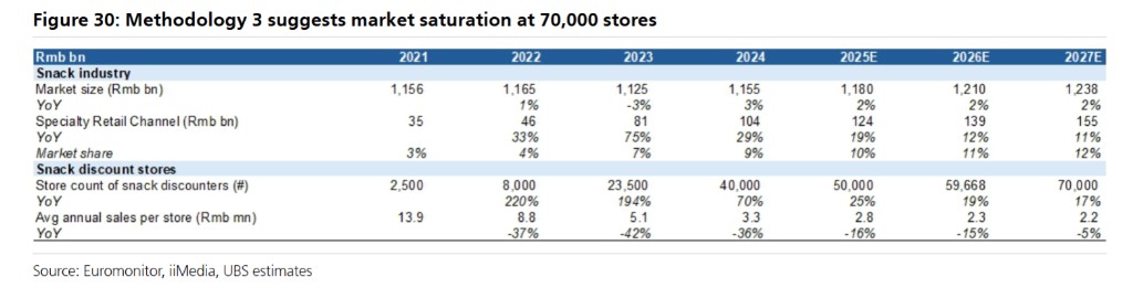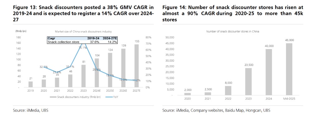 Snack discount stores are the main growth engine in the current market. This channel achieved an astonishing annual compound growth rate of 38% from 2019 to 2024. The number of stores has surged to 45,000, and even so, the bank believes the market is far from saturated, with an expected ceiling of over 70,000 stores.