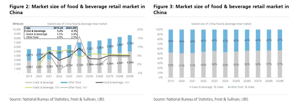 The report points out that by 2024, the scale of China's snack market will reach 1.1 trillion yuan. However, UBS predicts that from 2024 to 2027, the annual compound growth rate (CAGR) of the entire industry will slow to 2-3%.