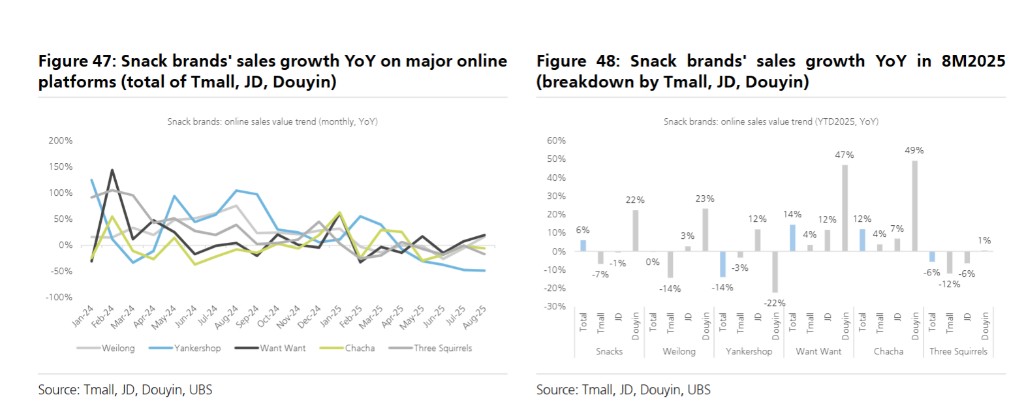 According to data from iiMedia Consulting, this channel achieved a compound annual growth rate of up to 38% in sales from 2019 to 2024. UBS predicts that from 2024 to 2027, it will continue to grow at a high speed with a compound annual growth rate of 14%, and its contribution to the overall sales of the snack industry is expected to increase from 9.0% in 2024 to 12.5% in 2027.