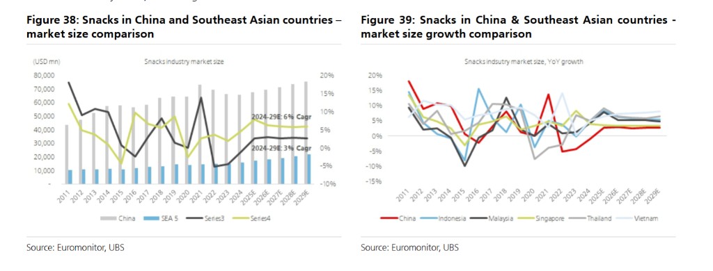 Since 2021, the snack industry in five Southeast Asian countries—Indonesia, Malaysia, Singapore, Thailand, and Vietnam—has consistently grown at a rate higher than that of China.