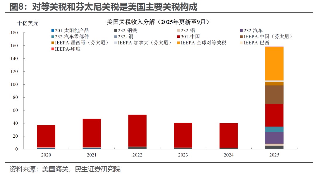 In addition, our previous reports have mentioned multiple times that the excess inventory generated by the earlier "import rush" and corporate tax avoidance strategies have led to a slow transmission of tariffs to the cost side. According to the latest research from the Federal Reserve Bank of St. Louis, the current transmission of tariffs to prices is only about 35%, with price adjustment lags and price-cutting behaviors under corporate competition making the pass-through of tariffs to the consumer side not yet apparent. As the new round of restocking demand in the U.S. is released and the inventory in bonded areas gradually leaves after the tariffs are implemented, combined with the dilution of corporate profit margins, the month-on-month increase may further accelerate, indicating that inflation pressure will further intensify in the fourth quarter.