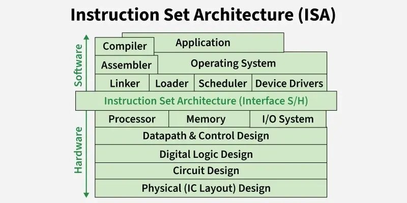 The instruction set acts as a "connector" between software and hardware, allowing software written according to standards to issue computational instructions to hardware.