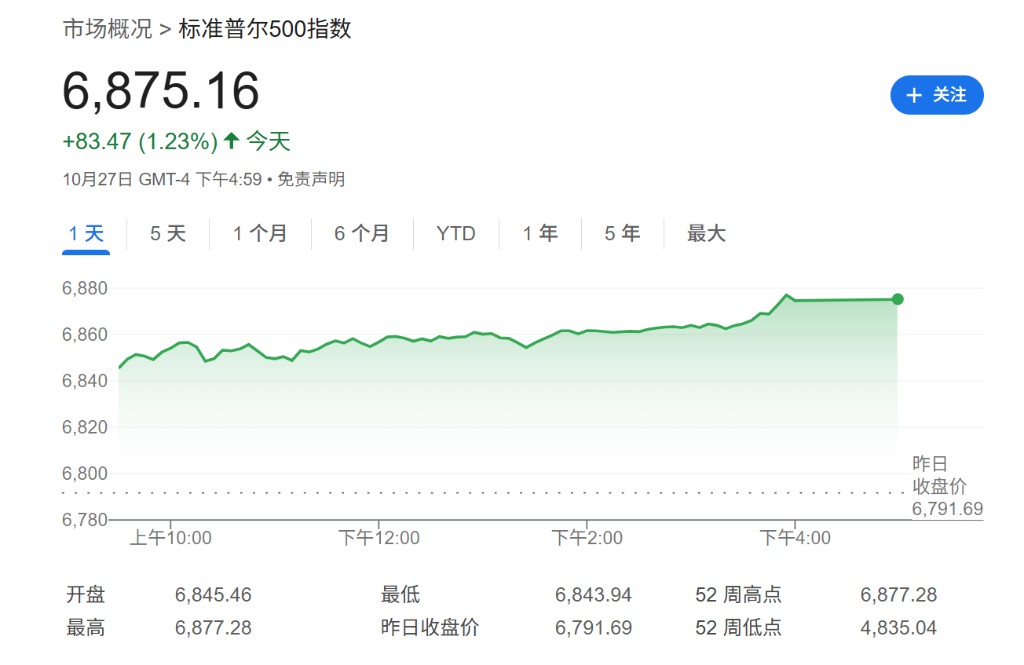 On Monday, buoyed by positive trade signals, expectations of interest rate cuts, and strong corporate earnings reports, the S&P 500 index closed strongly at a record 6,875 points. This performance injected a strong dose of confidence into the market, and strategists from multiple institutions believe that the market is ready to break through the 7,000-point barrier, with 7,500-7,700 points becoming the next target.