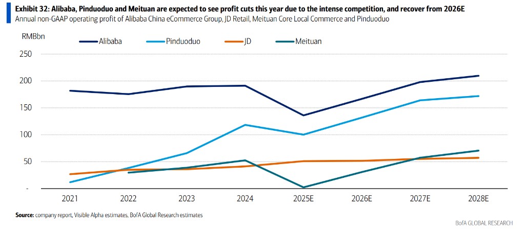 In stark contrast to the optimistic attitude towards AI and gaming, Bank of America Merrill Lynch generally holds a cautious stance on trading platforms (i.e., e-commerce and local services). The report describes the competition in the "instant retail" sector as a "protracted war rather than a blitzkrieg," and expects this war to last until 2026, thereby lowering the profit margins of the entire industry.