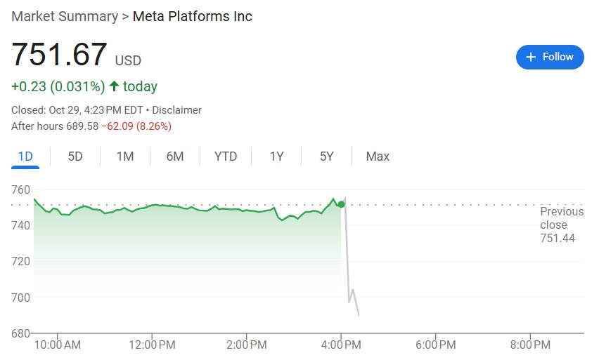 After the earnings report was released, Meta's stock plummeted over 8% in after-hours trading.