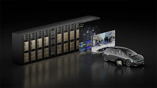 For example, in the cloud, the DGX supercomputer generates high-fidelity simulation data using DRIVE Sim for training the DRIVE AV model;