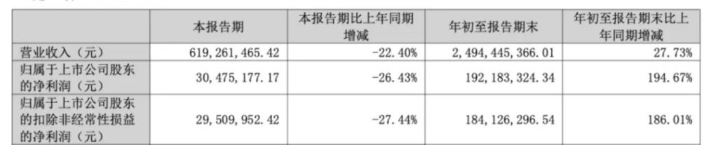However, from a quarterly perspective, the third quarter achieved an operating income of approximately 619 million yuan, a year-on-year decrease of 22.4%; the net profit was 30.47 million yuan, a year-on-year decrease of 26.43%.