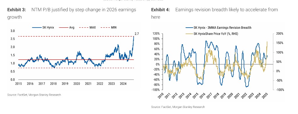 This adjustment directly boosts earnings expectations for SK Hynix. Morgan Stanley has raised its earnings per share (EPS) estimates for the company for the fiscal years 2025, 2026, and 2027 by 5%, 14%, and 15%, respectively.