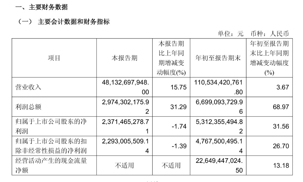 - Third-quarter revenue was 48.133 billion yuan, an increase of 15.75% year-on-year;
