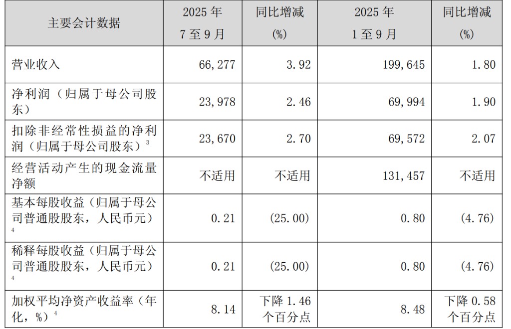 The third-quarter report shows that from January to September 2025, Bank of Communications achieved operating income of CNY 199.645 billion, a year-on-year increase of 1.80%; net profit (attributable to shareholders of the parent company) was CNY 69.994 billion, a year-on-year increase of 1.90%. This continues to reflect sustained growth based on a large business scale.