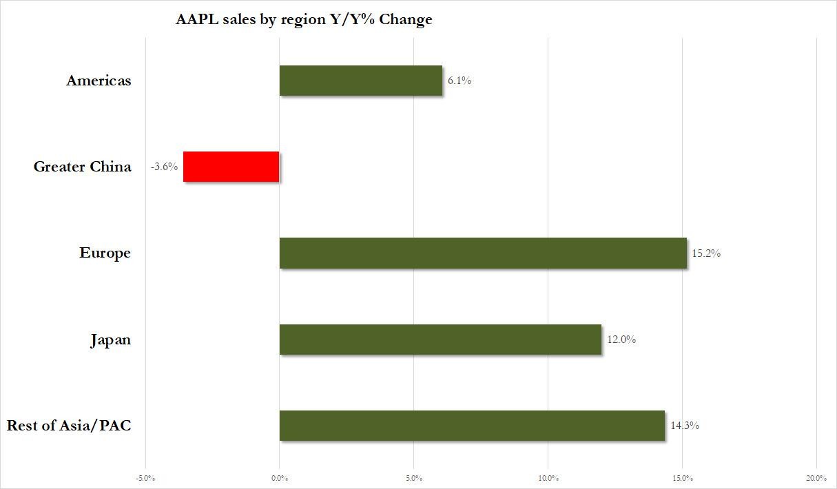 Among Apple's major markets, only the Americas and Greater China saw sales fall short of analyst expectations in the third quarter, with only Greater China experiencing negative sales growth.