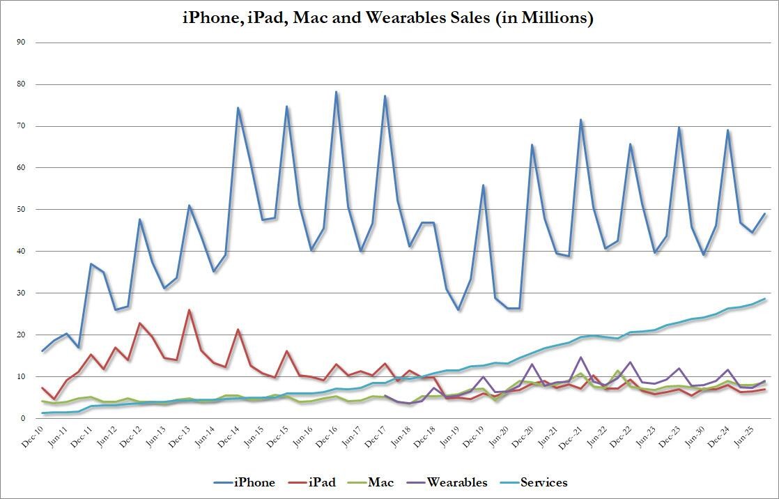 On October 30, Eastern Time, Thursday after the U.S. stock market closed, Apple announced the financial data for its fourth fiscal quarter of 2025 (hereinafter referred to as the third quarter) ending September 27, 2025, with the previous fiscal quarter referred to as the second quarter and the current fiscal quarter referred to as the fourth quarter.