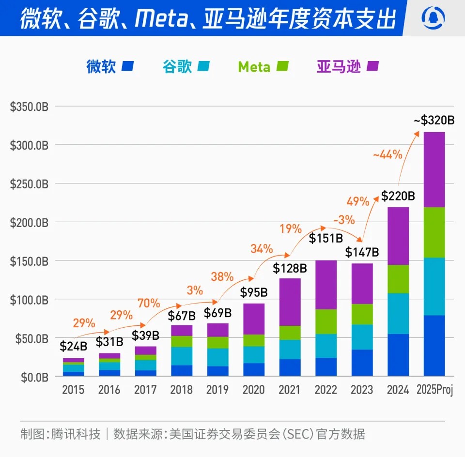 At the end of October, Meta delivered a contradictory report card: third-quarter revenue was approximately $51.2 billion, a year-on-year increase of 26%, setting a historical high; but at the same time, it raised its 2025 capital expenditure to $70-72 billion and clearly stated that the absolute capital expenditure for 2026 would be even larger, with a significant acceleration in total expense growth. These investments are primarily directed towards AI infrastructure construction, incremental cloud spending and depreciation, as well as AI talent compensation.