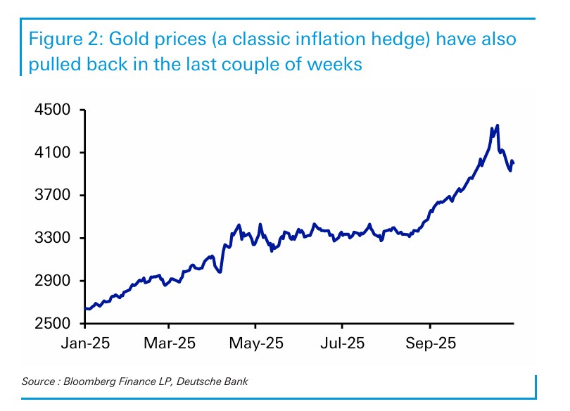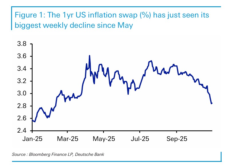 According to the Chase Trading Desk, Deutsche Bank noted in a report on November 3 that, benefiting from last week's trade easing, the 1-year inflation swap in the U.S. recorded its largest weekly decline since May. Meanwhile, the price of gold, a traditional inflation hedge, has also retreated from its highs.