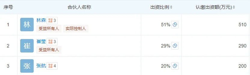 In their place are three individual shareholders: Lin Sen, Cui Ying, and Zhang Hang. The three contributed 5.1 million yuan, 2.9 million yuan, and 2 million yuan respectively, holding shares in proportions of 51%, 29%, and 20% This means that Qincheng Fund has officially completed the transition from "penetrating partnership shareholding" to "direct personal shareholding."