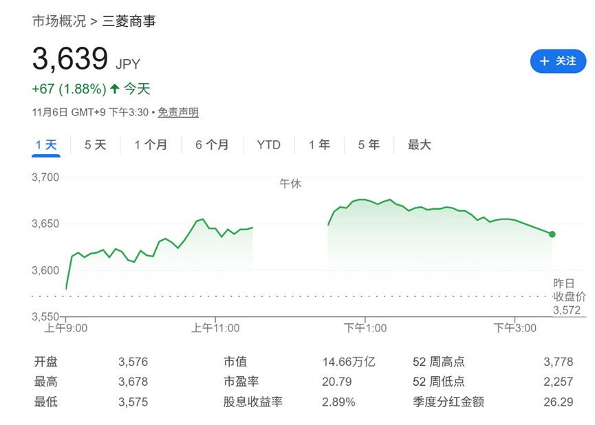 "This potential issuance is a signal that, from a global perspective, Japanese trading companies are still cheap and considered undervalued, making this move positive for their stock prices," commented Namioka from T&D Asset ManagementDuring the Tokyo trading session, the stock prices of Itochu Corporation, Mitsubishi Corporation, and Sumitomo Corporation all rose by more than 2%, outperforming the Tokyo Stock Exchange Index (Topix). Among them, driven by the dividend increase and stock split plan, Itochu Corporation's stock price showed particularly strong momentum.