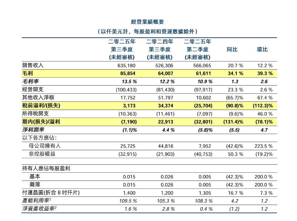 On the 6th, Hua Hong Semiconductor announced its Q3 financial report: