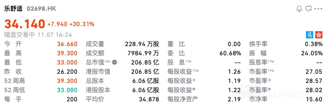 The Hong Kong stock of SOFTCARE rose over 30% in the dark market, with a total market value exceeding HKD 20.6 billion, earning over HKD 1,500 per lot