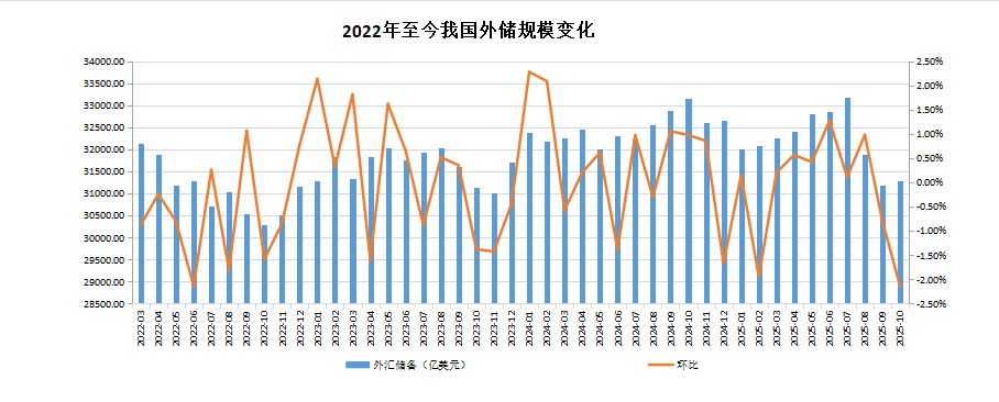 The State Administration of Foreign Exchange stated that in October 2025, influenced by the monetary policies and expectations of major economies, macroeconomic data, and other factors, the US dollar index rose, and global financial asset prices generally increased. The combined effects of exchange rate conversion and asset price changes led to an increase in foreign exchange reserves for the month. China's economic foundation is stable, with many advantages, strong resilience, and great potential. The long-term supportive conditions and basic trends for improvement remain unchanged, which is conducive to maintaining the basic stability of foreign exchange reserves