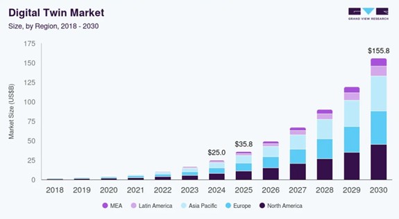 McKinsey estimates the digital-twin market could reach more than $48 billion by 2026, with wider adoption across industries potentially pushing that figure into the hundreds of billions into the next decade.